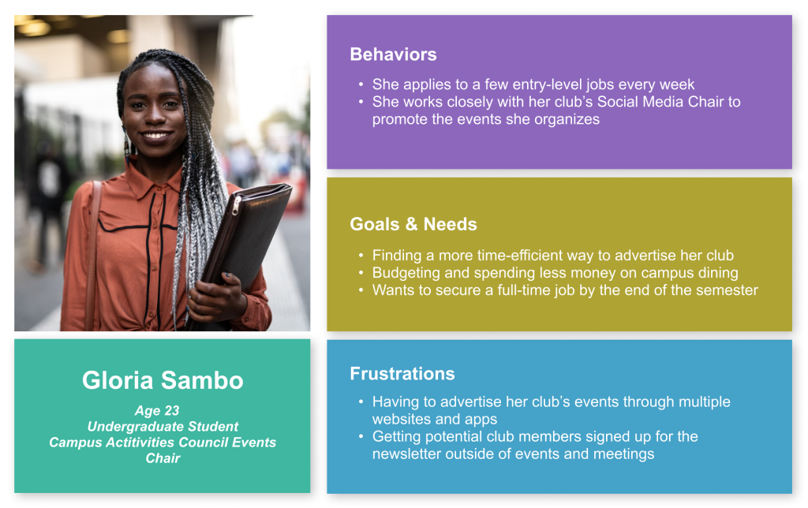 Ideal users are college undergraduate or graduate students who are 18-25 years old. They would like a way to find out what events are happening on campus and where, as well as add themselves to group chats for different events, clubs, and classes without needing an invitation to join. They are also interested in promoting their club’s events and knowing what clubs are available to join at their college.