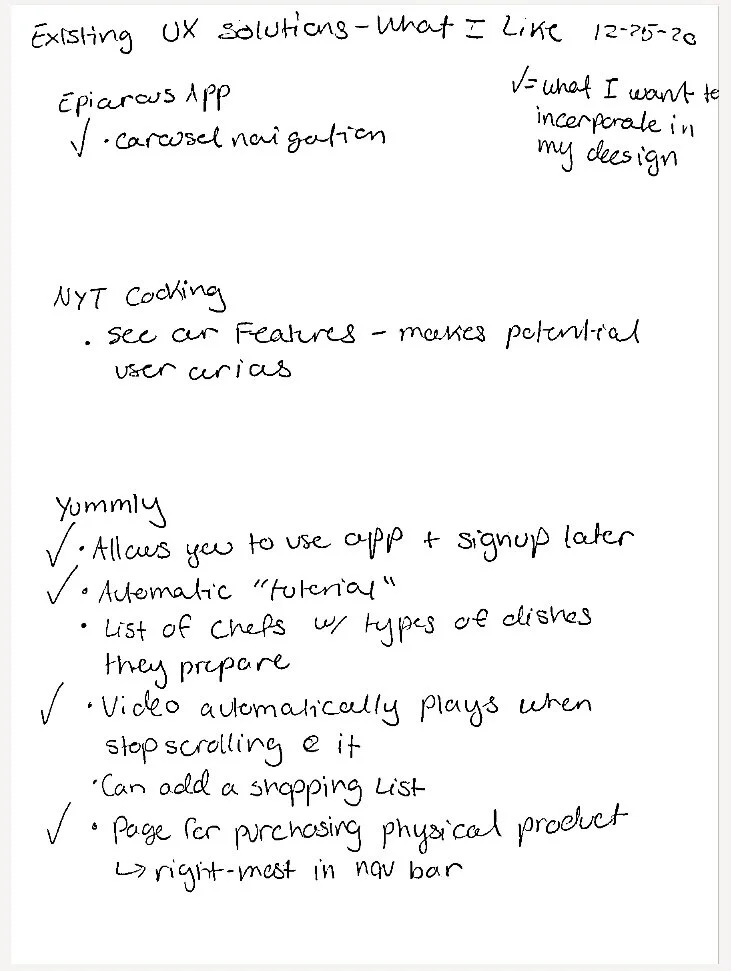 To solve the problem, my client tasked me with designing a mobile health food app for users to search through her recipes. I conducted extensive user research to understand the needs and experiences of the target audience, then researched, downloaded, and explored similar apps and took inspiration from their designs. Using Yummly, NYTimes Cooking, and Epicurious, I remixed a card style UI, subscription pages, and carousel onboarding. I then used the 4-step sketch method to sketch an initial design that addressed user needs and the client’s requirements. From there, I designed multiple wireframe iterations before applying visual styling to create a final mockup.